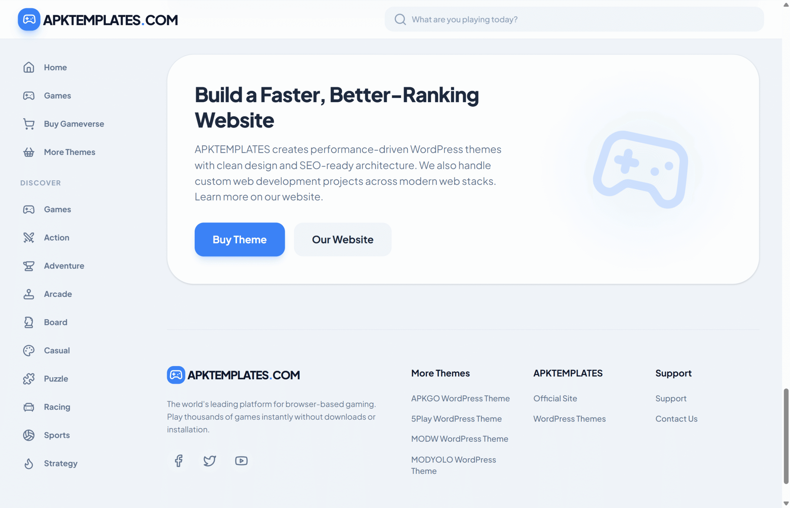 Online Play Games WordPress Website